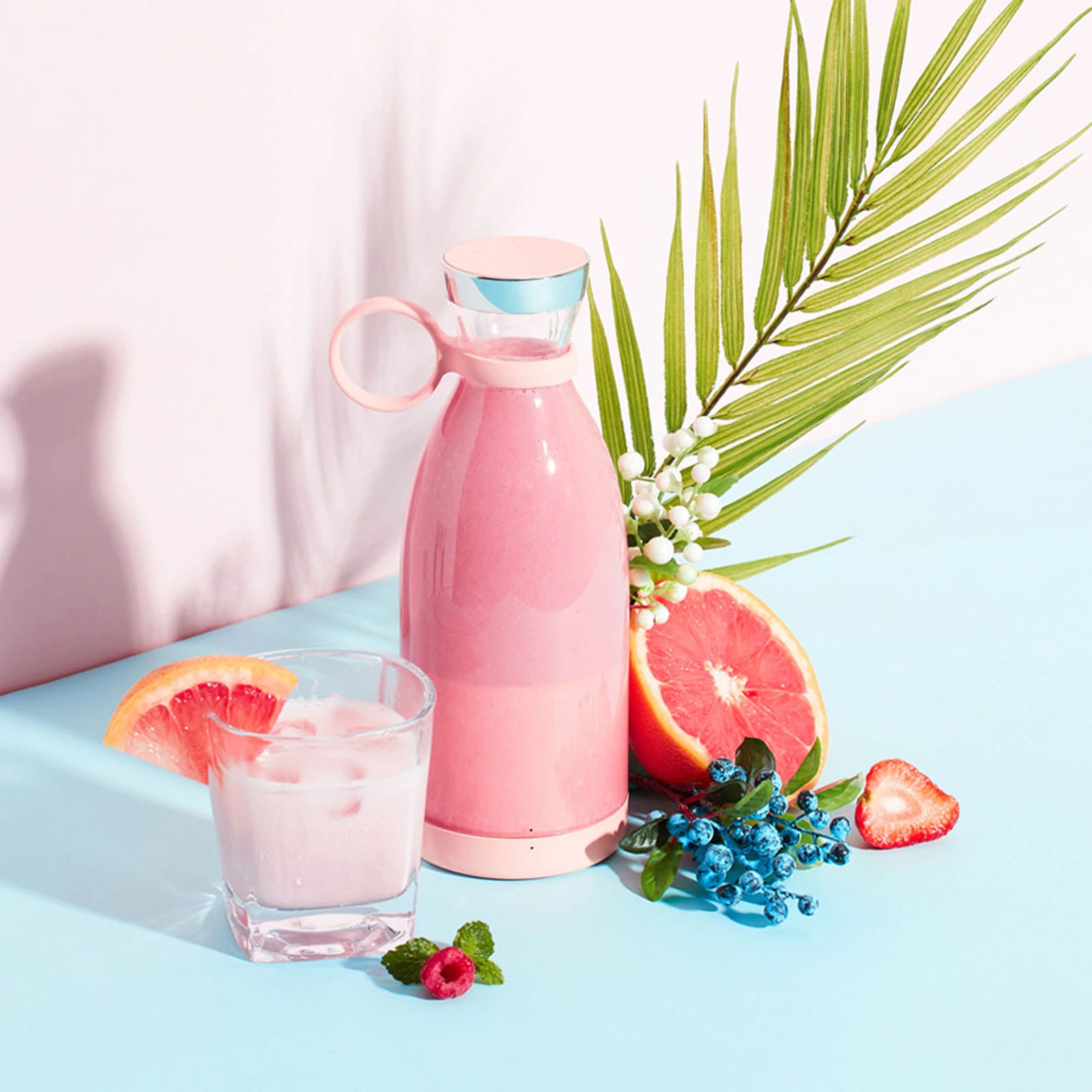 Blenderul nostru nu este doar elegant, ci și ergonomic, ceea ce îl face ușor de transportat. Este ideal pentru călătorii, picnicuri, birou sau pentru mamele care doresc să ofere bebelușilor lor un suc proaspăt. Cu acest blender, puteți avea sucuri proaspete oriunde și oricând, in doar câteva secunde. Este un companion perfect pentru un stil de viață activ și sănătos.